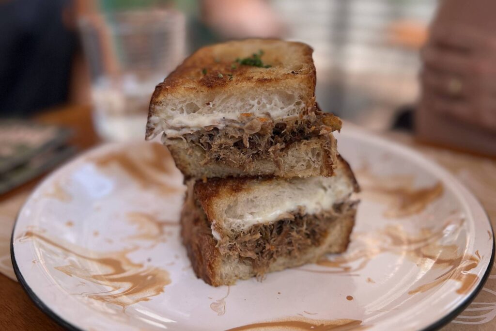 Entre os queridinhos da casa está o sanduíche de carne de panela com requeijão e geleia de pimenta com maracujá (R$ 42). Servido com bastante recheio em pão de fermentação natural, vale por um almoço.
