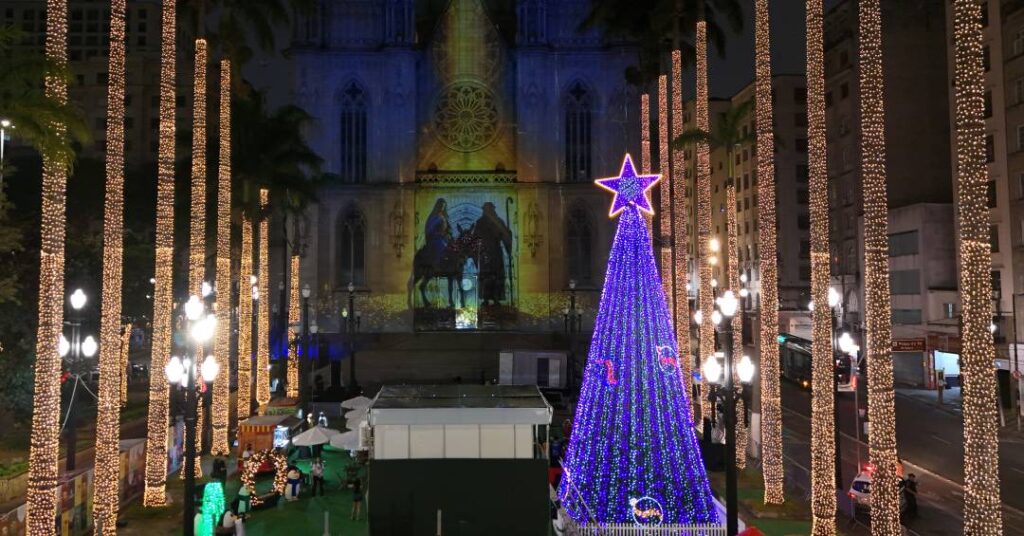 O Centro é o coração do Natal Iluminado, e ganha um circuito gratuito que transforma a região numa verdadeira vila de Natal. São mais de 50 pontos icônicos iluminados e decorados, com projeções mapeadas diárias em edifícios históricos como a Catedral da Sé, o Theatro Municipal e o Edifício Matarazzo. São nove sessões por noite, entre 19h20 e 21h40.