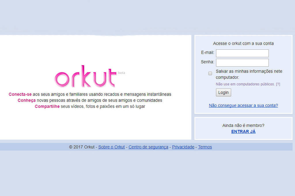 O Orkut foi encerrado oficialmente pelo Google em 2014, quando perdeu espaço para o Facebook e outras plataformas. No Brasil, a rede acumulou cerca de 30 milhões de usuários.