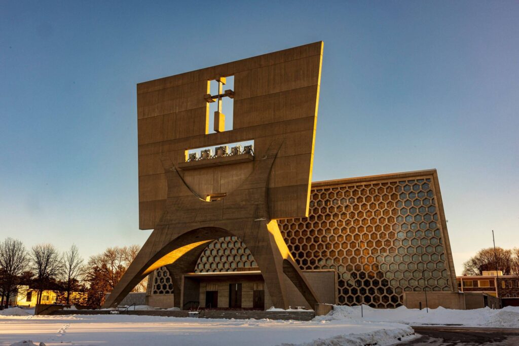 Num campo nevado em Minnesota, fica um mosteiro como nenhum outro. Uma faixa trapezoidal de concreto envolve a torre do sino e paira sobre uma janela frontal gigante em forma de colmeia, composta por centenas de hexágonos suavemente brilhantes. Por meio século, a existência desta obra-prima modernista foi conhecida principalmente pelos monges beneditinos que vivem lá e por arquitetos que fazem peregrinações à Igreja da Abadia de Saint John a cada verão.