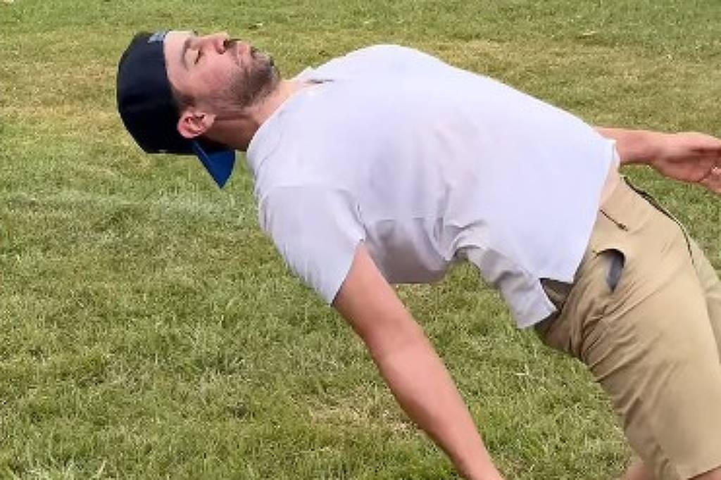 No vídeo, Marçal reúne uma plateia de cerca de 50 adultos em um gramado, onde exibe a todos o truque. “O movimento é esse: deitou, vou levantar e vou jogar o corpo reto, não pode dobrar e nem abrir as pernas demais”, leciona.