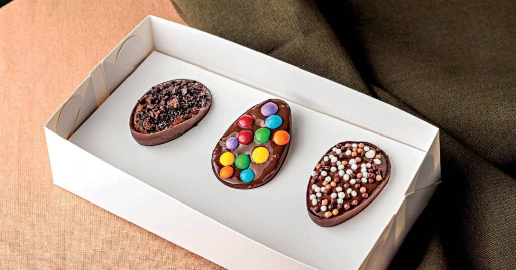 - Dolci Pavè Pasticceria oferece caixas com três pequenos ovos recheados de pavê (R$ 49,90).