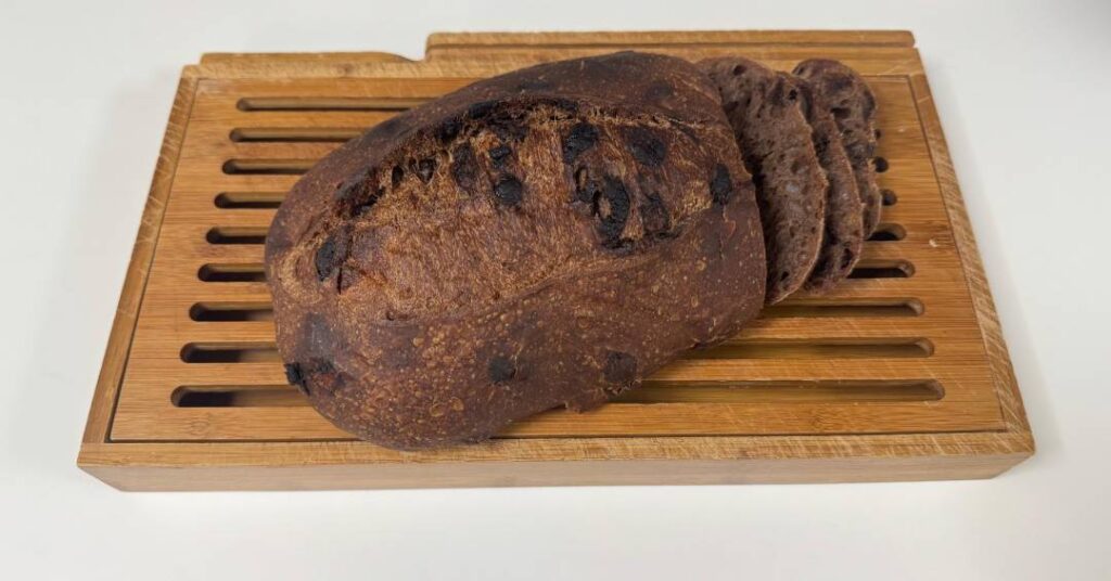 A receita é das boas: um pão de cor escura pela adição de cacau durante a elaboração. Na massa de fermentação natural, são adicionados ainda chocolate amargo, casca de laranja, cranberry e damasco. Como a base é do clássico pão de fermentação natural conhecido como sourdough, está longe de ser doce. Essa é a pedida sazonal do Tartapão Panifício,liderado pelo chef Gustavo Young, o Gus.