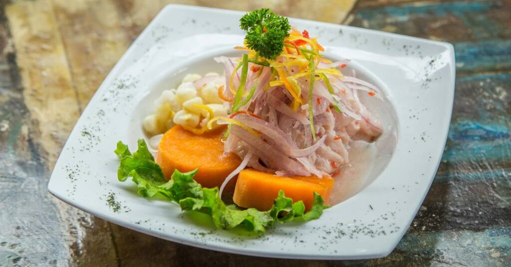 O prato mais famoso e exportado da gastronomia peruana, o ceviche pode ser feito de várias formas. Mas, por ser originário do litoral do país, a versão clássica é com peixe cru, acompanhada de cebola, alho e diferentes condimentos, como pimenta e coentro. Costuma ser acompanhado de algum carboidrato adocicado para quebrar a acidez, como milho ou batata-doce.