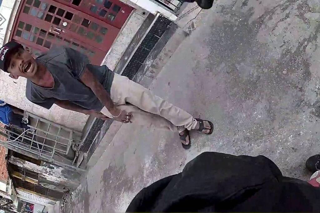 A perseguição começou fora da favela, na Chácara Santo Antonio, na tarde de quinta-feira (7). Ao chegar a uma viela dentro de Paraisópolis, o suspeito deixou a moto caída e saiu correndo. O policial prosseguiu e o alcançou, gritando “parou, parou!”. O homem parou e colocou as mãos na cabeça por um instante, mas logo voltou a correr no sentido contrário.