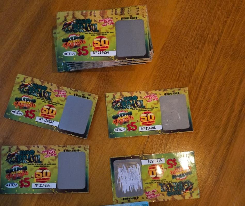 Também foi autorizada a apreensão e o descarte do material de raspadinhas, que somava centenas de bilhetes e banners de propaganda apreendidos durante as diligências.