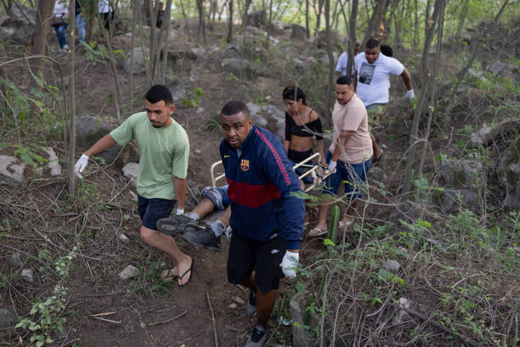 Ao longo da tarde e noite de terça e madrugada de quarta, moradores, com apoio de mototaxistas, foram até a mata buscar os corpos. Dezenas deles foram levados a uma praça na Penha, onde foram enfileirados.