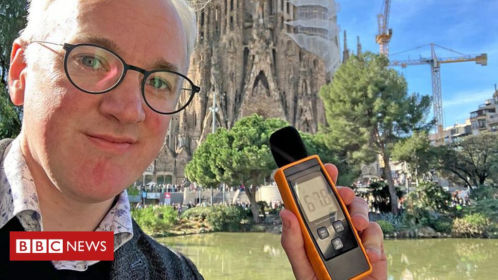Natalie Mueller, do Institute for Global Health de Barcelona, me leva para uma caminhada pelo centro da cidade. Começamos em uma rua movimentada — meu medidor de som marca mais de 80 decibéis —, e seguimos para uma avenida tranquila e arborizada, onde o barulho cai para a casa dos 50 decibéis.