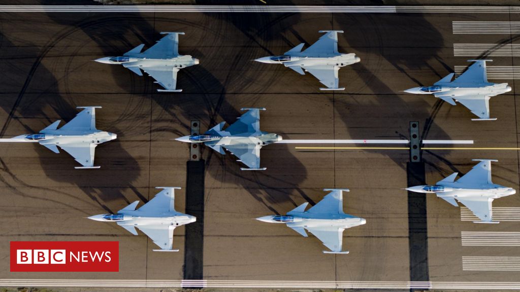 Legenda da foto, A empresa sueca Saab, fabricante do avião de combate Gripen, afirma que, agora, vender para a Otan ficou mais fácil