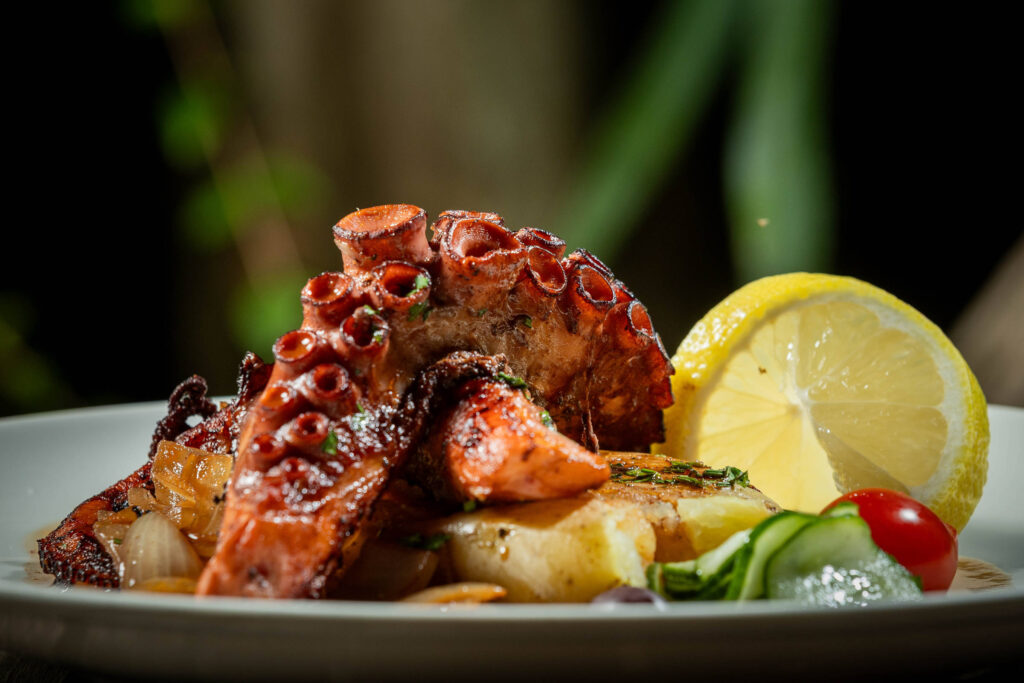 O polvo é pescado em Ilhabela ou em Cabo Frio (RJ). No cardápio, dá-se preferência aos pescados locais, como badejo, robalo, dourado e camarão-rosa.