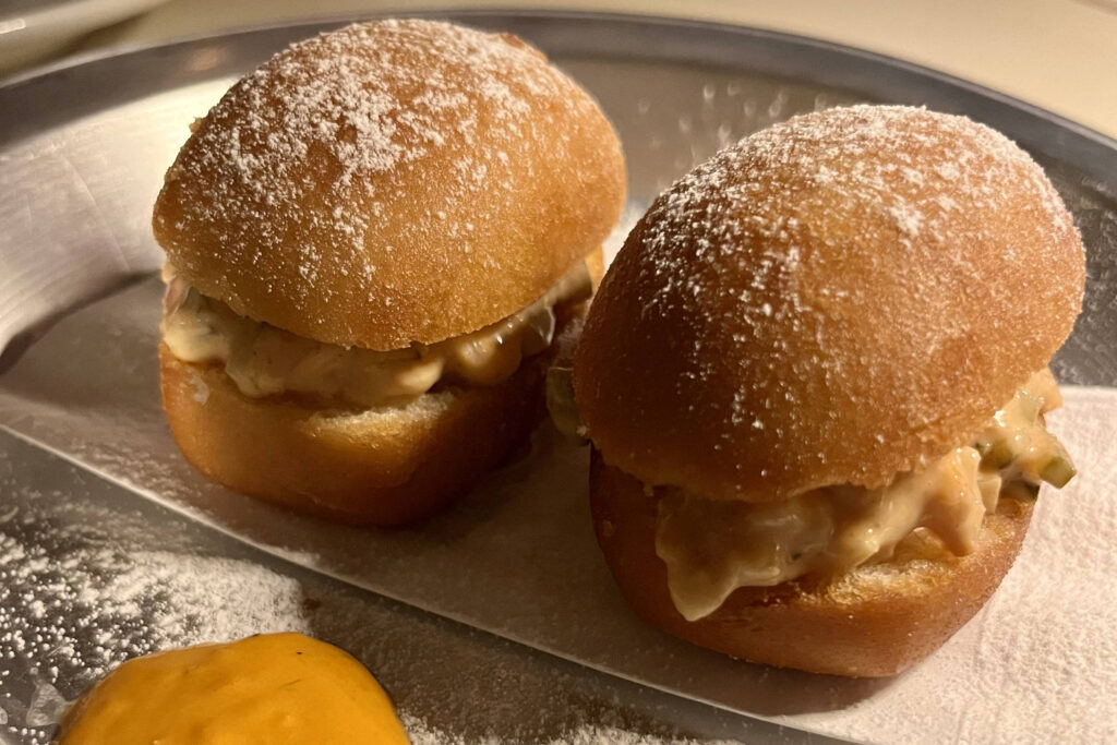 A berinjela caramelizada (R$ 42) é preparada à milanesa e vem sobre molho ranch, que lembra maionese. A batata ao motel (R$ 36) é frita e servida com purê de queijo. O tuna tuna (R$ 56), cubos de atum marinado, vem com gema cremosa e alho frito. O sonho (R$ 46), em versão salgada, é recheado de coquetel de camarão e deixa a impressão de que os ingredientes não deram match.