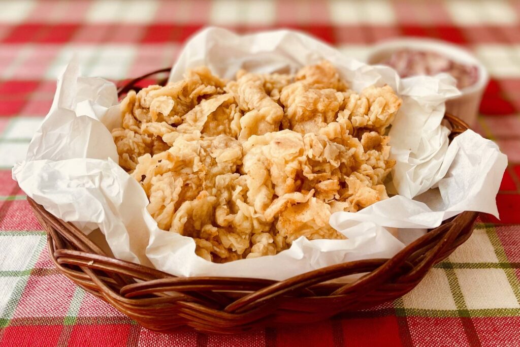 Para homenagear os japoneses com um cardápio natalino mundano, fique com uma receita de frango frito e uma saladinha de inspiração nipônica. Não é exatamente um karaage (técnica tradicional de fritura do Japão), mas não resisti ao trocadilho.
