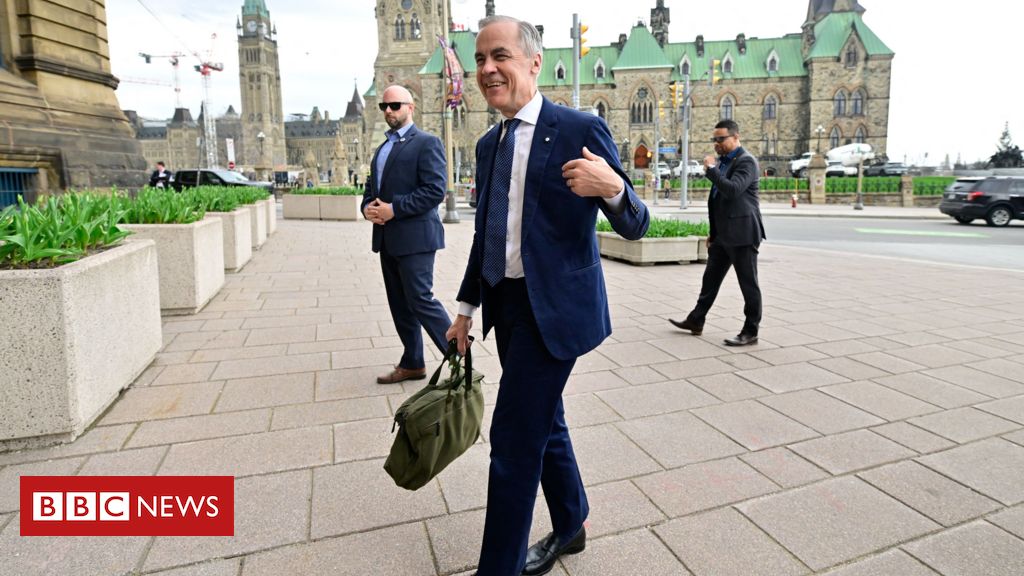 Legenda da foto, O primeiro-ministro canadense, Mark Carney, volta ao trabalho após a vitória do seu partido nas eleições de segunda-feira (28/4) no país