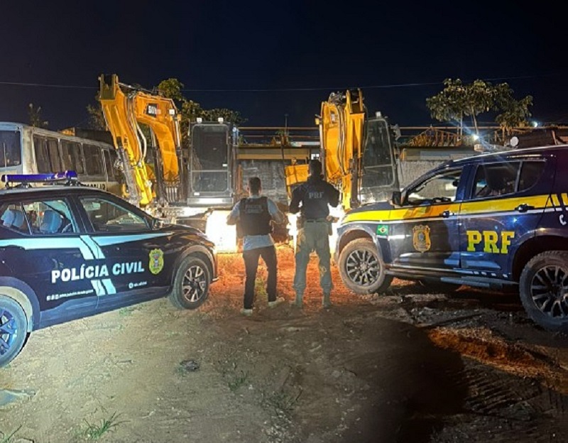 PRF e Polícia Civil recuperam no interior de Mato Grosso escavadeiras furtadas no Rio de Janeiro