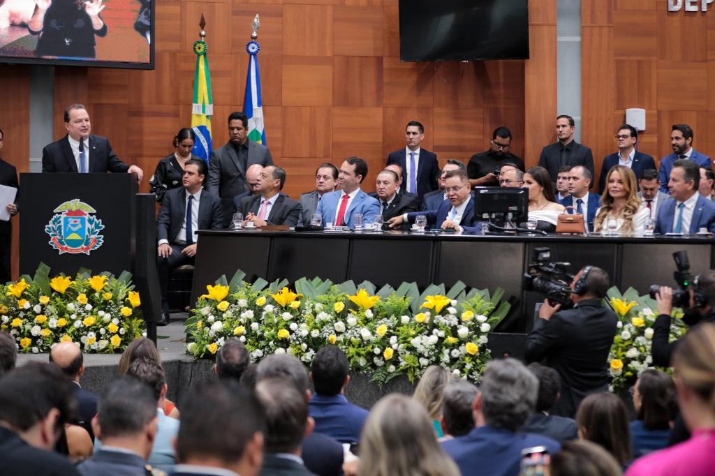 A primeira-dama de Mato Grosso, Virginia Mendes, juntamente com o governador Mauro Mendes, prestigiou, nesta segunda-feira (03), a posse da nova mesa diretora na 3ª Sessão Legislativa, referente à 20ª Legislatura, para o biênio 2025-2027.