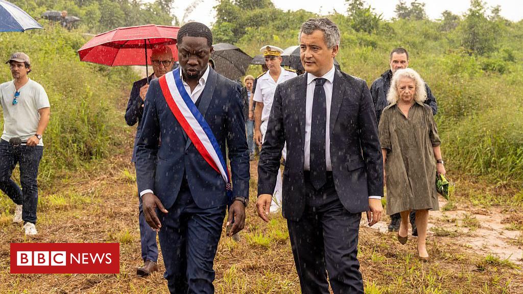 Legenda da foto, Gérald Darmanin visitou a Guiana Francesa no fim de semana