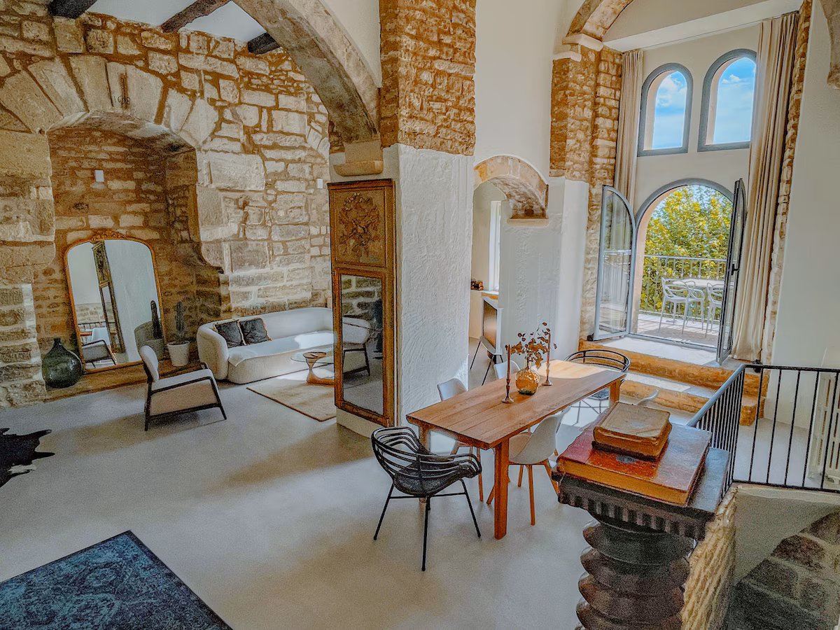 A casa: Totalmente renovada, essa casa do século 17 no coração de Gordes revela detalhes de épocas distantes em sua arquitetura, com paredes de pedra e tetos altos. A varanda se abre para uma vista do Luberon que parece saída de um quadro, enquanto os interiores combinam história e conforto moderno. Ideal para receber até quatro hóspedes, o espaço possui duas suítes, escritório e sala de estar de decoração vintage. O banheiro é um espetáculo a parte, com paredes que remetem à uma gruta e mantém o ambiente refrescante. Com serviço de concierge, cada detalhe é pensado para que a estadia seja tão inesquecível quanto o cenário provençal ao redor. Reserve aqui.