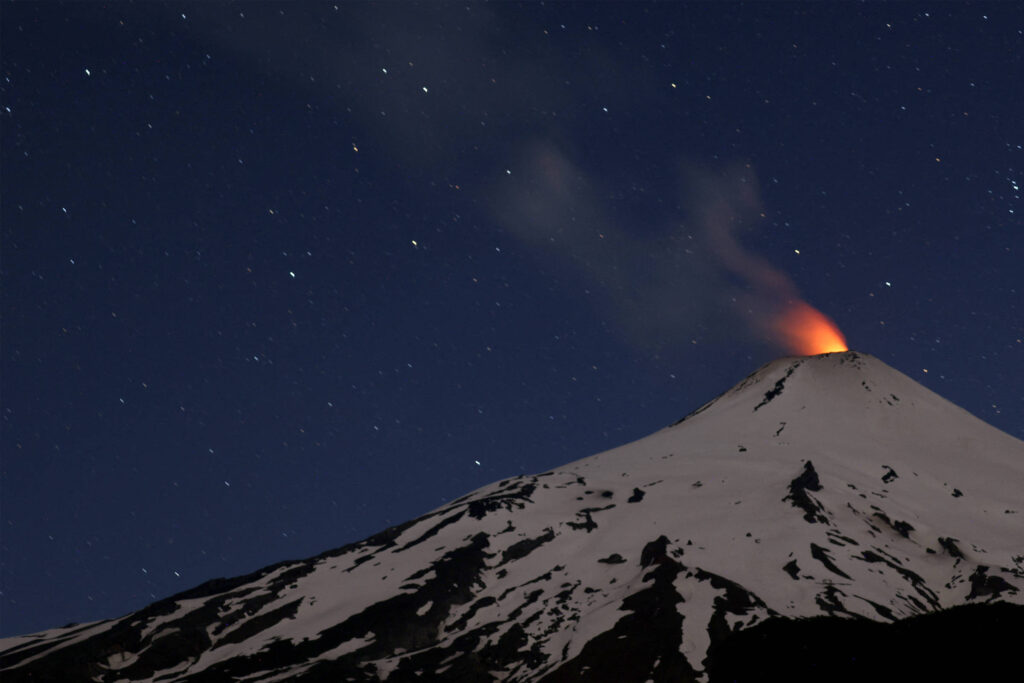 O sol surge imponente na cordilheira dos Andes, fazendo reluzir o topo do vulcão mais ativo do Chile. Chamado por uns de Villarrica, ele também é conhecido como Rukapillan, ou “a casa dos espíritos”, segundo os mapuches, seus habitantes nativos.