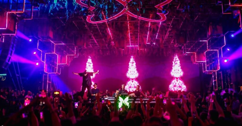 A casa investe em tecnologia audiovisual e inclui experiências como shows holográficos, além de bares distribuídos pelo complexo. A temporada também começa em junho, acompanhando o calendário tradicional da ilha.