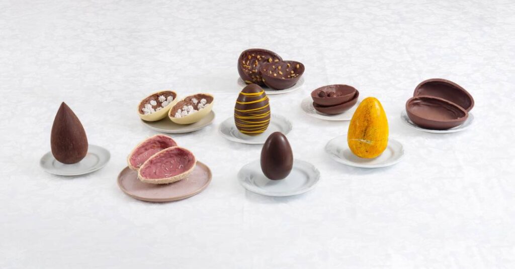 Mica Crafted Chocolates. O ovo maracujá (R$ 260,00, 300 gramas) combina casquinha de chocolate branco, caramelo de maracujá e crocante da mesma fruta com castanha-do-pará. A “surpresa” fica por conta dos suspiros na camada interior de chocolate ao leite. É equilibrado e com uma bem-vinda pitada cítrica. Rua Artur de Azevedo, 1199, Pinheiros, WhatsApp 99379- 1200. Tem acessibilidade; Shopping JK Iguatemi, WhatsApp 94744-5968. Tem acessibilidade.