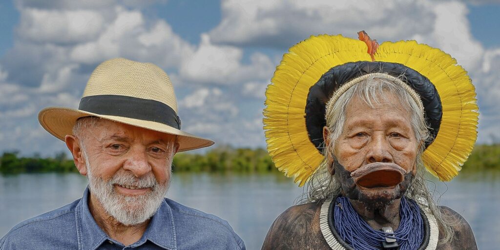 Em uma visita histórica, o presidente Luiz Inácio Lula da Silva se reuniu nesta sexta-feira (4), na Aldeia Piaraçu, Terra Indígena Capoto-Jarina, no Mato Grosso, com o cacique Raoni Metuktire, do Povo Kaiapó, uma das mais importantes e reconhecidas lideranças indígenas do planeta. Na ocasião, o presidente condecorou Raoni, que tem 93 anos, com a Grã-Cruz da Ordem Nacional do Mérito, maior honraria do Estado brasileiro, em reconhecimento às realizações do líder indígena em favor dos povos originários e da proteção do meio ambiente.![]()
