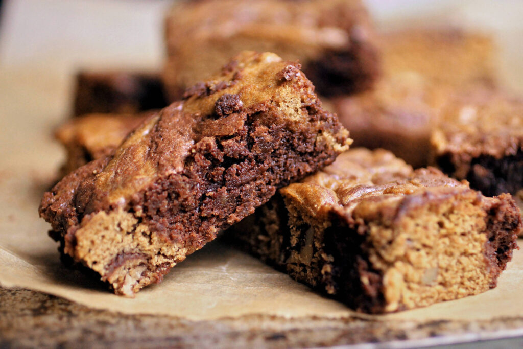 Estas barrinhas marmorizadas, com centro macio, têm todas as características de uma sobremesa perfeita —abóbora com especiarias, chocolate amargo, nozes tostadas e um toque de uísque. Veja a receita a seguir: