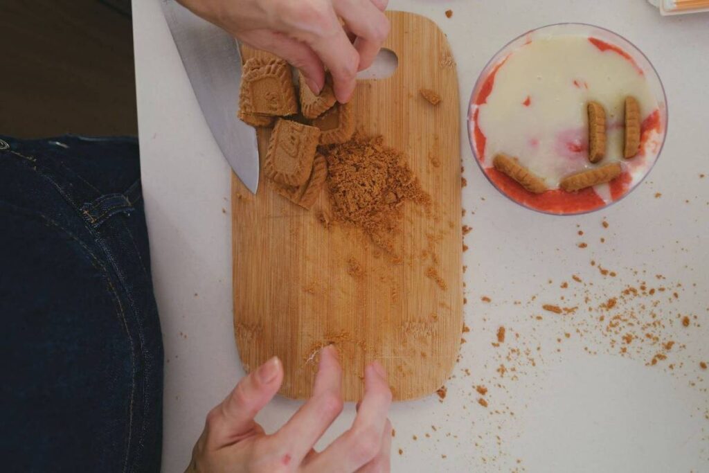 • Na hora de servir, finalize com biscoito triturado por cima, para garantir crocância