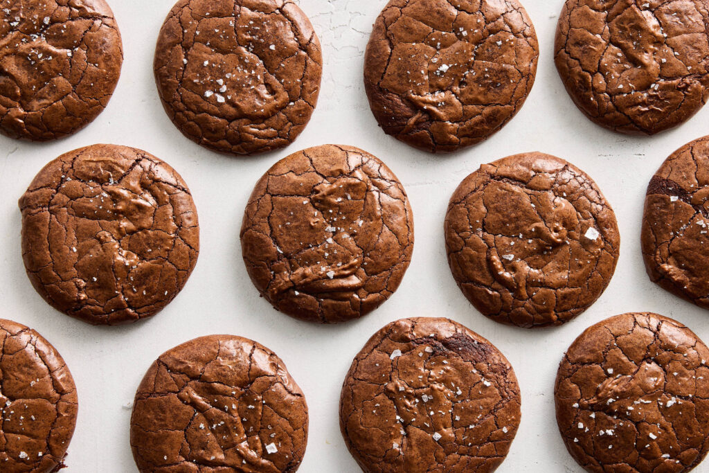 - Asse por 8 minutos até que os biscoitos comecem a se espalhar e adquiram uma superfície externa brilhante. Em seguida, retire as assadeiras do forno e bata-as algumas vezes na bancada para criar uma superfície craquelada. (Isso também ajuda a criar uma consistência mais macia.) Cubra com flor de sal e volte ao forno para terminar de assar por mais 2 minutos, até ficarem brilhantes e levemente inchados. Deixe esfriar por alguns minutos diretamente nas assadeiras antes de transferir para uma grade para esfriar completamente.