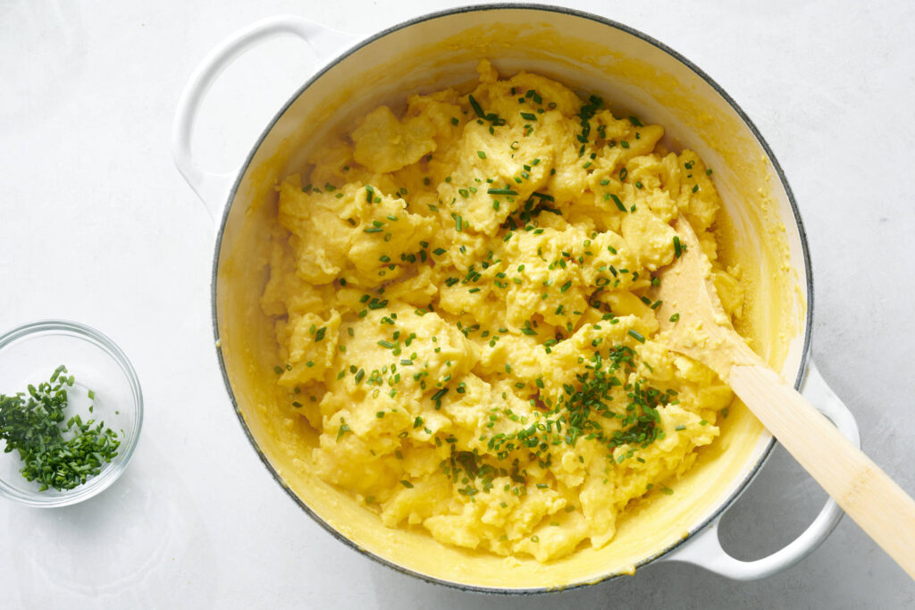 Quer você esteja mexendo apenas alguns ovos ou fazendo uma grande quantidade, a diferença entre ovos secos, emborrachados e aqueles que você realmente quer comer está nos detalhes. Esta receita e as dicas a seguir ajudarão a entregar uma mexida em grande formato que é macia, cremosa e alcançável para qualquer cozinheiro.