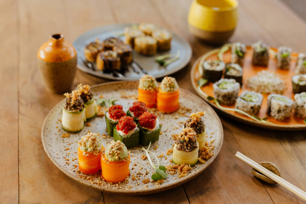 No Bejí, novo restaurante na Vila Madalena, os sushis são feitos sem peixe pelas mãos de um casal de mineiros. Levam manga, abobrinha, tofu e outros ingredientes de base vegetal que são enrolados nos formatos tradicionais da culinária japonesa.
