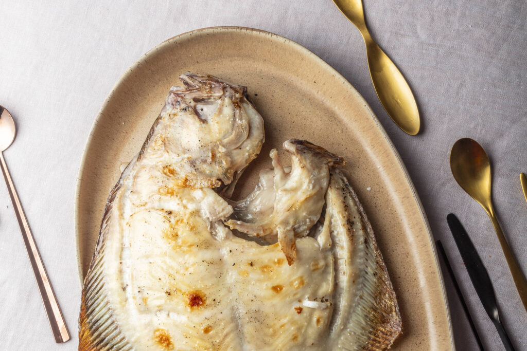 Ele explica, em primeiro lugar, que como o peixe é plano, ao nadar, tem uma pele escura voltada para cima (nessa parte se localizam os ossos, parte da defesa do animal) e uma pele clara voltada para o fundo do mar, que tende a caramelizar no fogo. Prova-se, então, um bocado de cada.