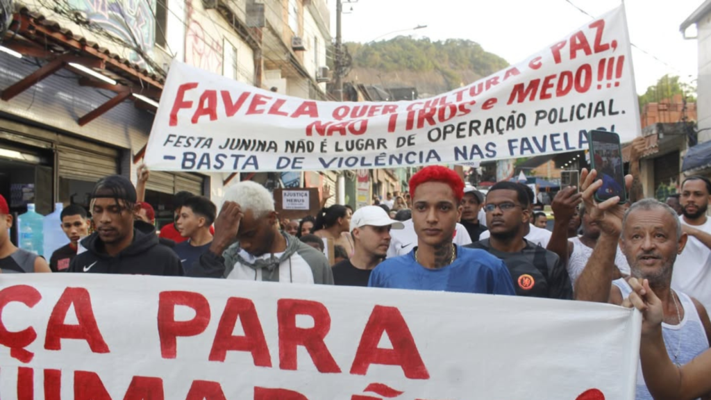 Os moradores da comunidade Santo Amaro, no bairro do Catete, zona sul do Rio de Janeiro, realizaram um protesto na tarde deste sábado (7) após a morte do jovem Herus Guimarães, que foi baleado pela Bope durante uma festa junina ocorrida na última sexta (6).