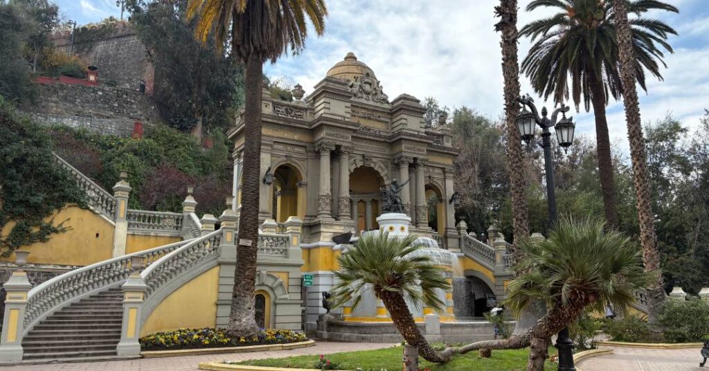 Dali, são cerca de dez minutos de caminhada até o bonito Cerro Santa Lucía, que marca o local da fundação de Santiago pelo conquistador Pedro de Valdivia em 1541. Prepare as pernas para muitas subidas: vários lances de escada levam ao topo do morro, a 69 metros de altura, que descortina uma bela vista para a capital chilena e a Cordilheira dos Andes. Na base, a atração é a Fuente Neptuno.