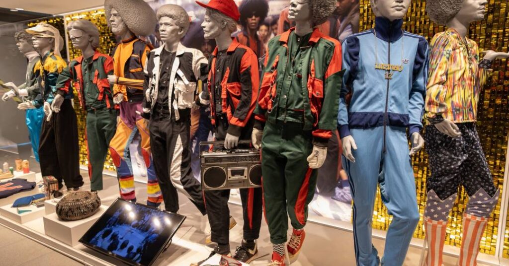 Roupas da época, boomboxes, pôsteres e flyers de bailes black são algumas das atrações que recuperam a estética e efervescência do movimento em suas origens na cidade. Tudo com o toque pessoal de curadores que viveram a cena nesse período e revisitaram o próprio acervo e o de amigos para garantir uma experiência testemunhal em primeira mão, como o caso de Rooneyoyo O Guardião.