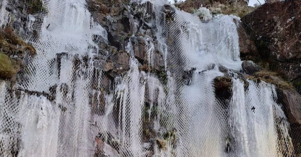 Paredão rochoso na Serra do Rio Rastro ficou coberto de gelo (Polícia Militar Rodoviária de Santa Catarina/Reprodução)