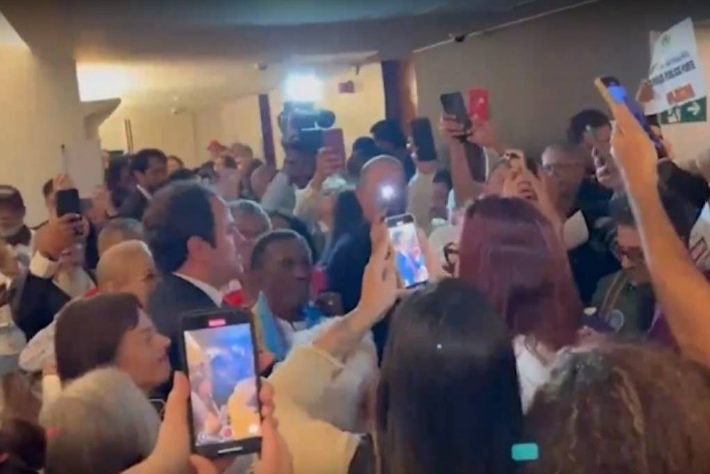 Após o encontro, que ocorreu no auditório Nereu Ramos, o grupo seguiu em sentido ao Salão Verde, mas foi impedido de passar, porque já havia começado a sessão plenária. Eles pararam a poucos metros do gabinete do presidente da Casa, Hugo Motta (Republicanos-PB).
