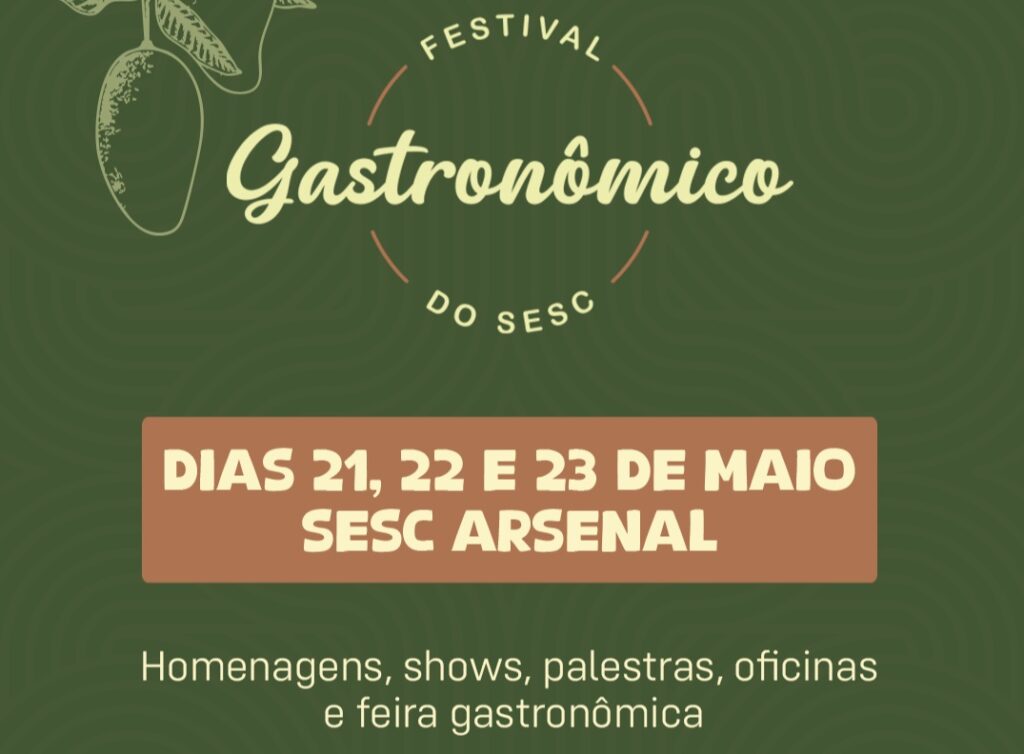 O Sesc Arsenal recebe, entre os dias 21 e 23 de maio, o primeiro Festival Gastronômico do Sesc-MT, no jardim da unidade. O evento contará com homenagens, shows, palestras e oficinas, e a presença de queijarias, vinícola e cervejaria todos os dias, além da mais tradicional feira cultural e gastronômica de Cuiabá, o Bulixo. A entrada é gratuita, com doação voluntária de 1kg de alimento não perecível (exceto sal), que será destinado ao Sesc Mesa Brasil.