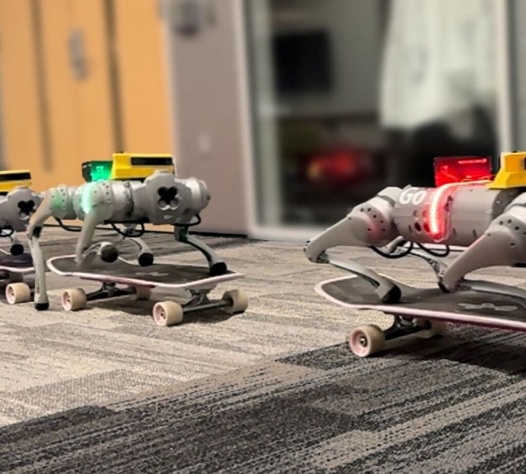 Você já deve ter visto por aí alguns desses vídeos onde robôs de quatro patas fazem absolutamente de tudo, mas agora a ciência chegou a outro nível e os robôs aprenderam a andar de skate. Pesquisadores conseguiram criar um novo framework para essas máquinas, proporcionando uma movimentação suave sob as quatro rodas dos skates.