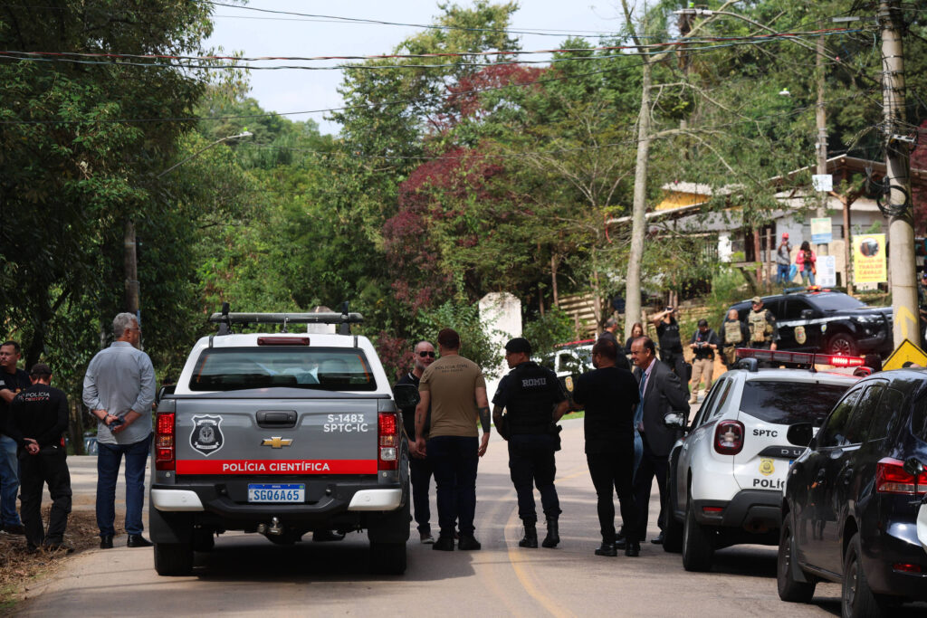 Equipe composta por investigadores da Delegacia de Cajamar e agentes da polícia científica iniciou a reconstituição por volta 10h45, isolando a área do ponto de ônibus em que Vitória desembarcou, na estrada Fernando Misse, e onde o carro de Maicol foi visto na noite do crime.