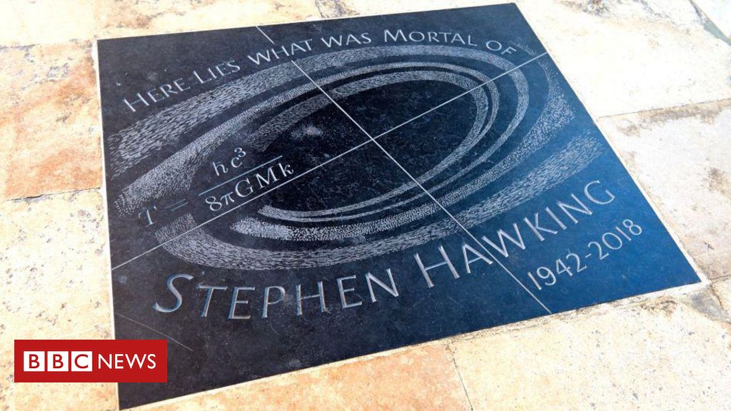 Legenda da foto, Além da equação, está escrito em sua lápide: ‘Aqui jaz o que era mortal de Stephen Hawking (1942-2018)’