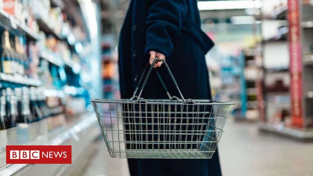 Foto de uma cesta de supermercado vazia em um mercado.