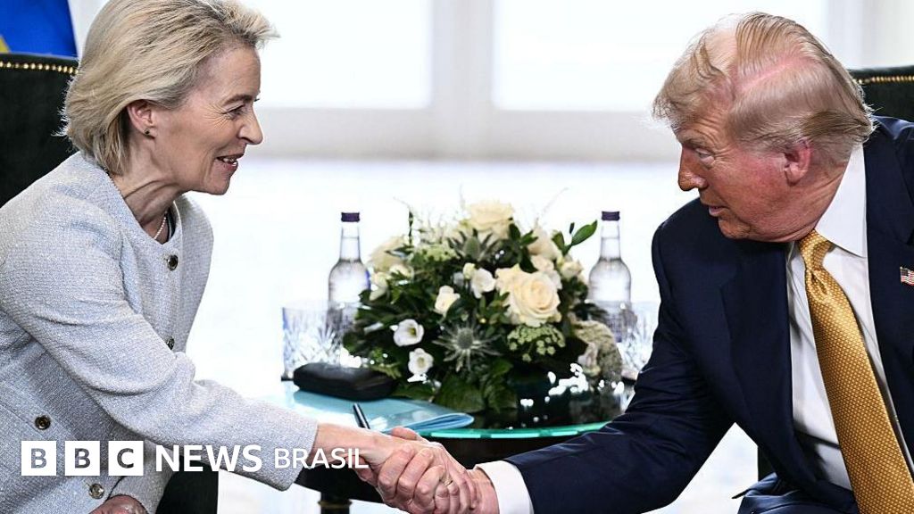 Trump anunciou o acordo ao falar com jornalistas em seu resort de golfe em Turnberry, na Escócia, logo após uma breve reunião com Ursula von der Leyen.