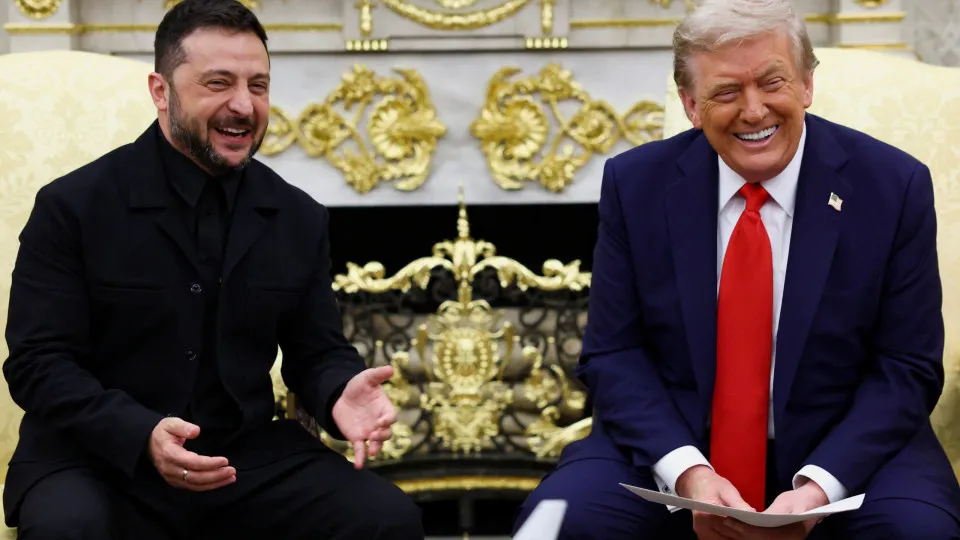 Quando o jornalista começou a formular uma nova pergunta, foi interrompido por Zelensky: “Mas você está com o mesmo terno”, arrancando risadas da plateia e concordância imediata de Trump.