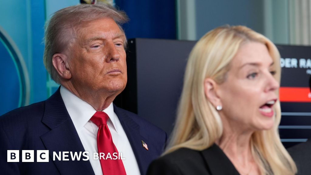 Legenda da foto, Trump colocou a polícia de Washington sob controle federal, comandada agora por Pam Bondi