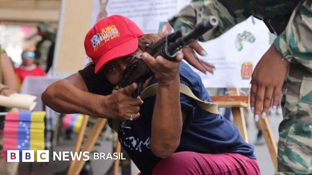 A capacitação é dada pela Milícia Nacional Bolivariana, uma força civil criada pelo falecido presidente Hugo Chávez em 2009 para ajudar a defender a Venezuela.