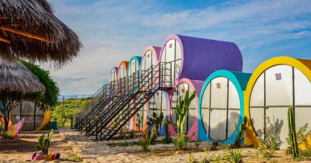 Em Villavieja, na Colômbia, existe um hotel inusitado: quartos em formatos de tubos em pleno deserto de Tatacoa. As construções coloridas vibrantes do Tubo Hotel La Tatacoa contrastam com a região árida, que é ideal para a observação de estrelas, longe da poluição luminosa da cidade.