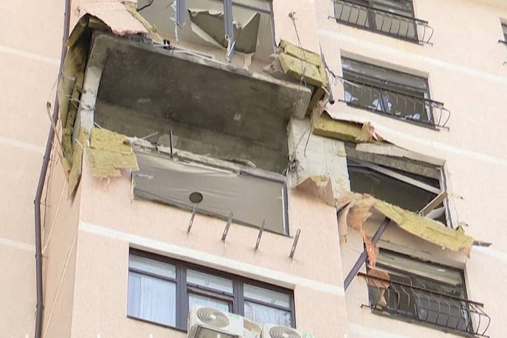Em sua conta oficial no Telegram, Kravchenko publicou um vídeo mostrando danos em três prédios. As imagens mostram as construções com janelas quebradas e varandas penduradas na fachada, além de destroços espalhados e um carro destruído na frente dos edifícios.