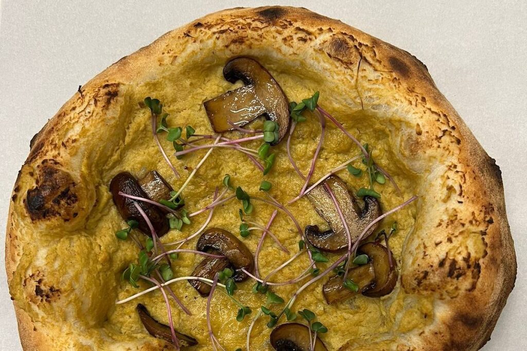 A pizzaria vegana foi transferida para um salão maior e traz novidades no menu. A versão da marinara (R$ 41) leva creme de alho confit, azeite, molho de tomate e óleo concentrado de infusão de algas. A massa de longa fermentação agora também é usada para montar sanduíches, como o de creme fermentado de castanhas, posta de tofu na chapa, folhas e molho de manga (R$ 43).