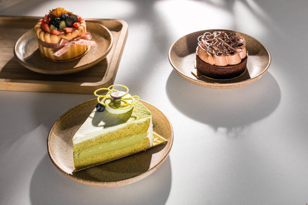 Segue inspiração yogashi, na qual influências ocidentais se mesclam à confeitaria tradicional japonesa. As receitas não levam farinha de trigo e fazem uso moderado de açúcar. O bolo de matchá (R$ 34,70) tem massa leve e recheio de creme de confeiteiro sabor chá-verde, com um toque de mirtilo na cobertura. O entremet plant-based é feito com abacaxi, shisô —folha da família da menta—, geleia de mirtilo e musse de chocolate (R$ 34,30).