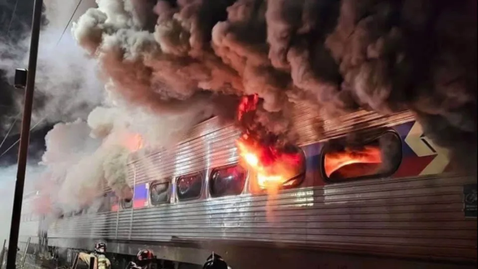 O trem, de seis carruagens, estava viajando entre a Filadélfia e Delaware, quando as chamas começaram a tomar o local pelas 18h15 da tarde [horas locais].